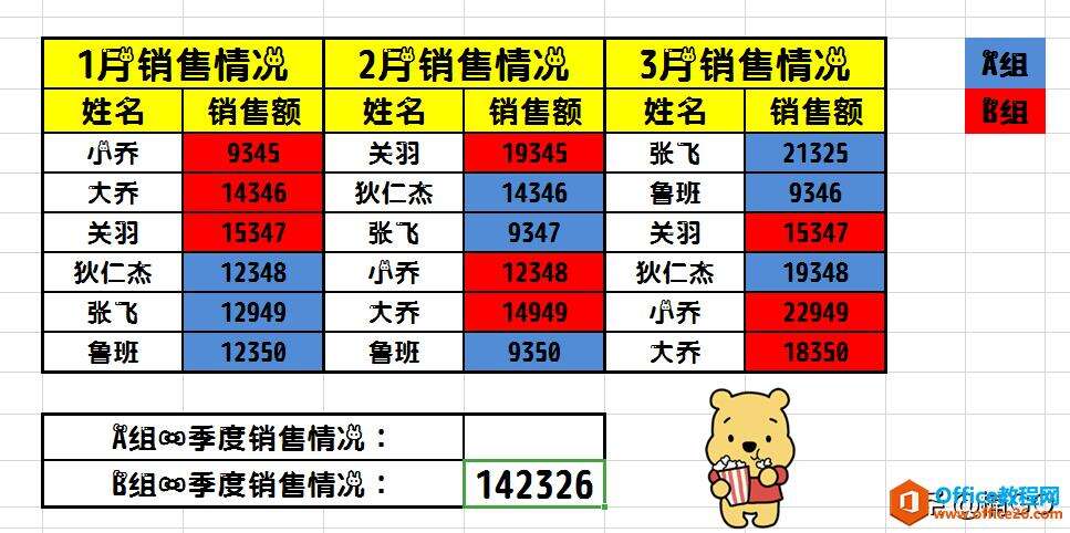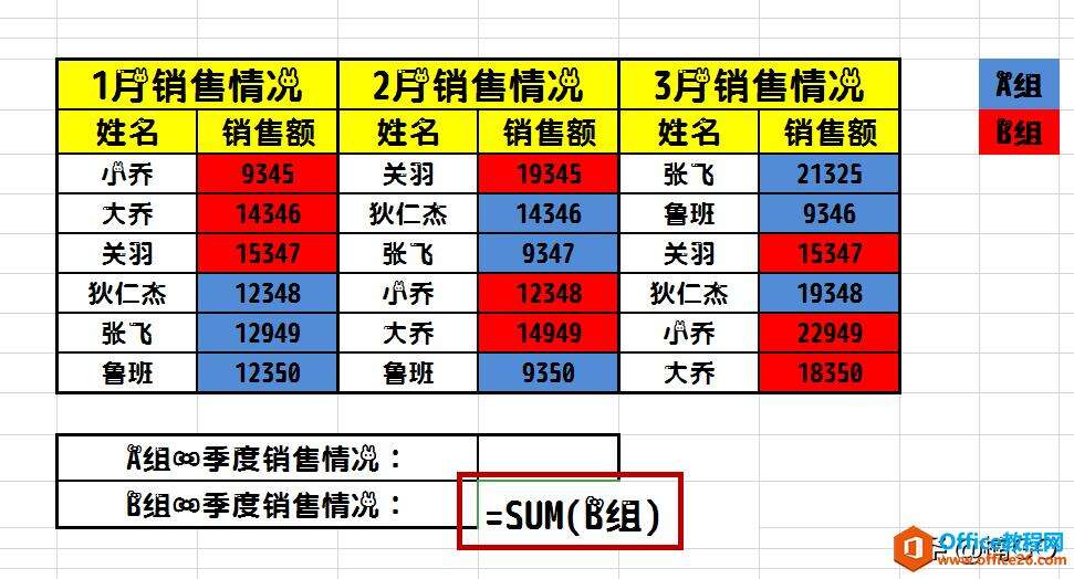 最后,利用我们的sum函数,在求和单元格中输入: =sum(B组)