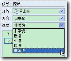 在“方向”下拉框列表中,“擦除”动画下可以执行下列四种操作: 自底部、自左侧、自右侧、自顶部。