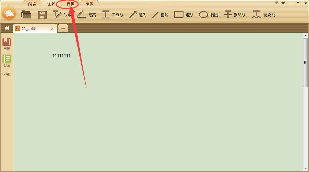 2、添加完毕后在极速pdf阅读器界面顶部的工具栏中打开“转换”功能,如下图所示: