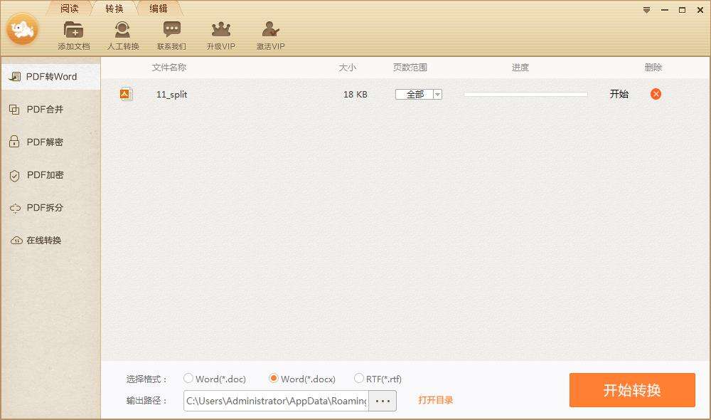 3、接着在转换界面中选中“PDF传Word”,之后在选择好保存的位置,最后点击“开始转换”就可以了。