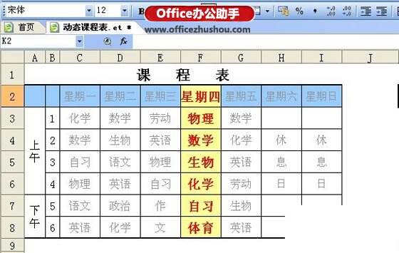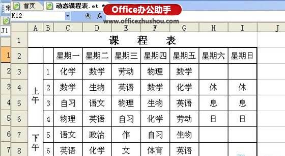 以上是为您收集整理的【使用WPS制作动态课程表的方法】办公软件教程的全部内容,希望文章能够帮你了解办公软件教程使用WPS制作动态课程表的方法。