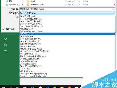 然后选择文件保存的路径,在下边的保存类型里边,选择网页htm