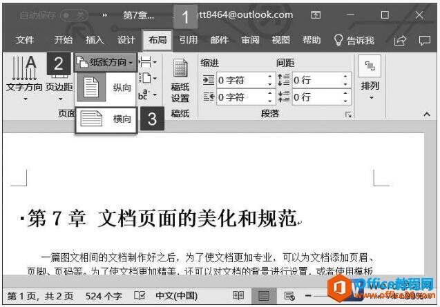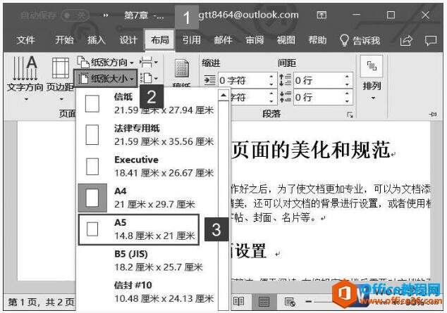 word2019文档中设置纸张大小和纸张方向的方法图解教程