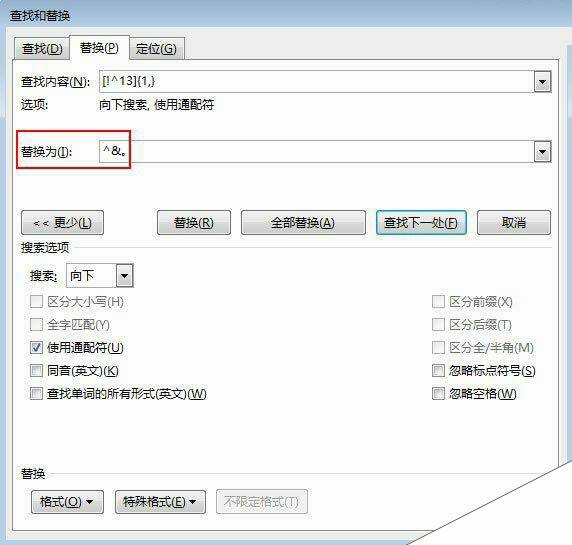 ③在替换为里面输入: ^&。