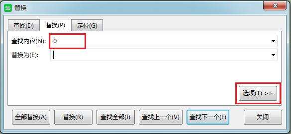 第一种,查找替换去除零值。首先选中数据,按Ctrl+H组合键调出替换窗口,查找框输入0,替换框不填,填写后单击选项按钮。