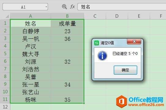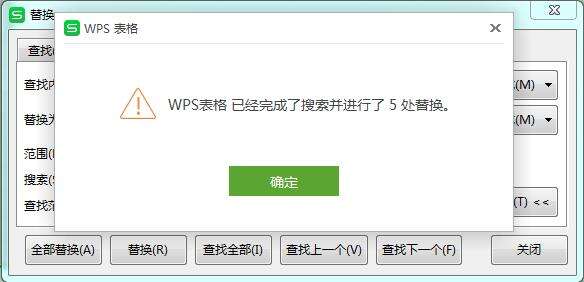 我们可以看到,系统提示替换了5处,单击确定,此时所有的零值都变成空白显示了。