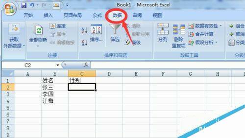 定位在需要设置选择下拉类别的单元格,即性别下面的单元格