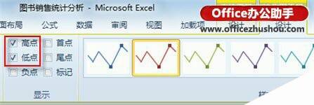 在“显示”选项组中单击选中“高点”和“低点”复选框,以便在图表中突出显示最高值和最低值。