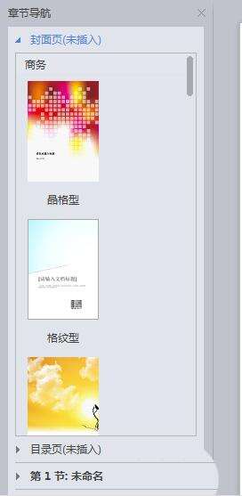 接着我们先来讲解一下这个章节导航的使用方法,点击章节导航以后就会在左边出现这个章节的设定界面,我们可以在这里进行设定封面页,目录页,等等,具体如图