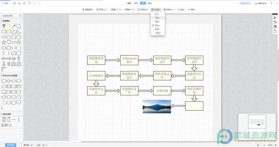 第三步:就可以看到流程图以页边距为20px的效果显示了。