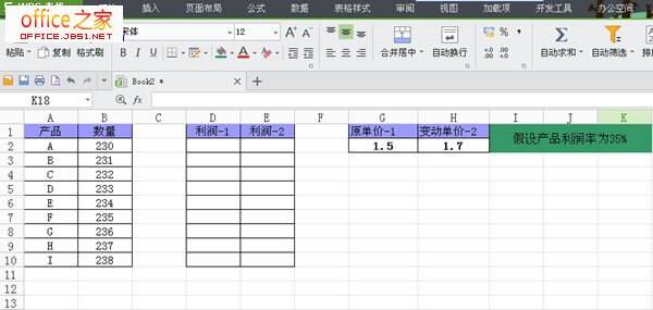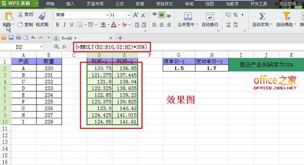 WPS表2013以35%的利润率为例计算商品价格变动的利润