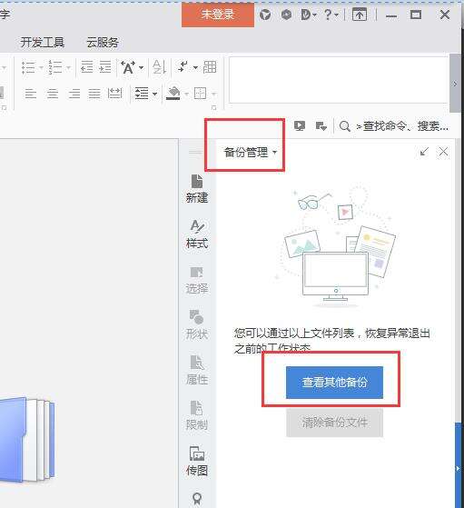 三、没找到的话可以点击中间的查看其它备份,在弹出的窗口中选择需要恢复的文档;