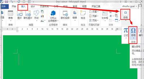 钢筋符号SJQY字体安装之后,就可以使用。打开word文档,点击“插入”,点击“符号”(注:这里是word2013,word2007、word2010操作基本一致,word2003操作类似)。