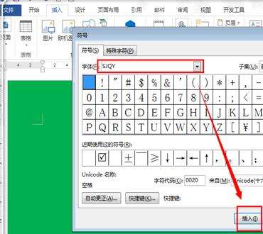 进入到符号插入栏目,在符号后面的方框书输入“SJQY”,点击“插入”。