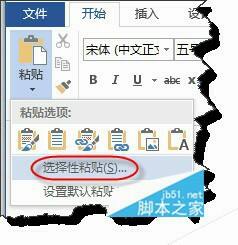 回到WORD中,在“文件”选项卡中,如图选择“选择性粘贴”