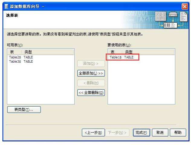 双击需要添加的表,该表会自动添加到要使用的表一栏,添加结束,点击完成,