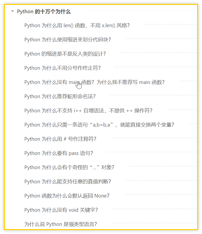 第二章是“Python为什么”系列,该系列主要关注 Python 的语法、设计和发展等话题,以一个个“为什么”式的问题为切入点,试着展现 Python 的迷人魅力。