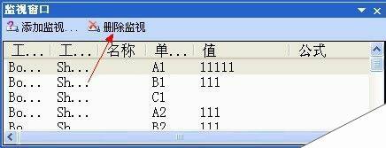 删除的方法跟excel 2003一样,直接单击【删除监视】按钮