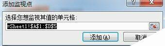 3、在【添加监视点】对话框选择您想要监视的单元格,单击【添加】按钮