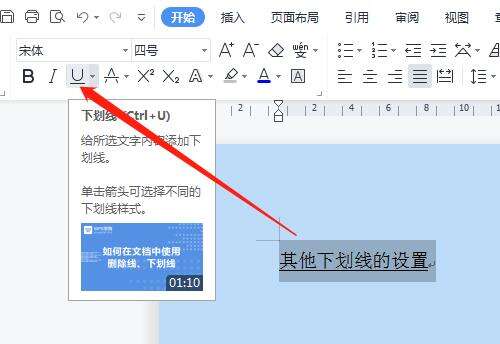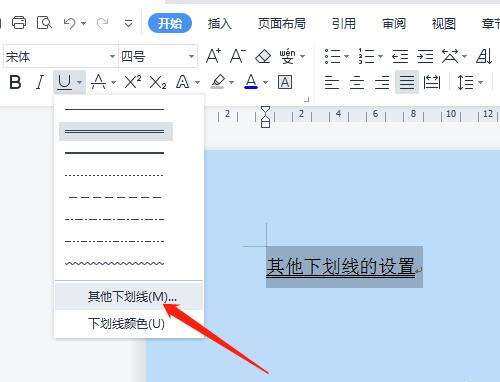 第四步:或单击三角形处选下划线其他类型,如双线。