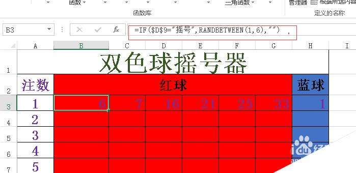 excel怎么制作双色球摇号器? excel自动随机生成双色球号码的教程