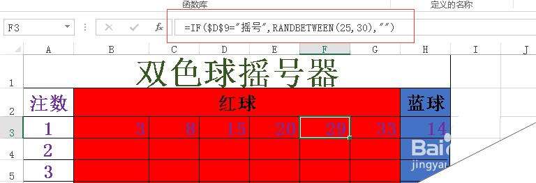 7、F3公式 =IF($D$9="摇号",RANDBETWEEN(25,30),"")