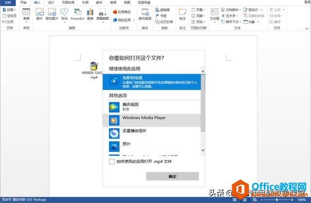 以上是为您收集整理的【为什么把mp4放入word中打不开?】办公软件教程的全部内容,希望文章能够帮你了解办公软件教程为什么把mp4放入word中打不开?。