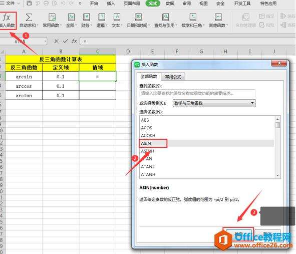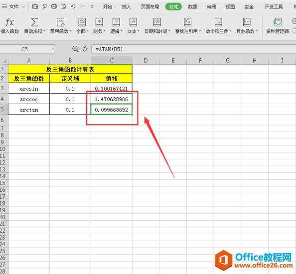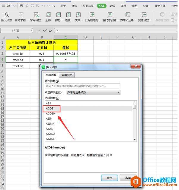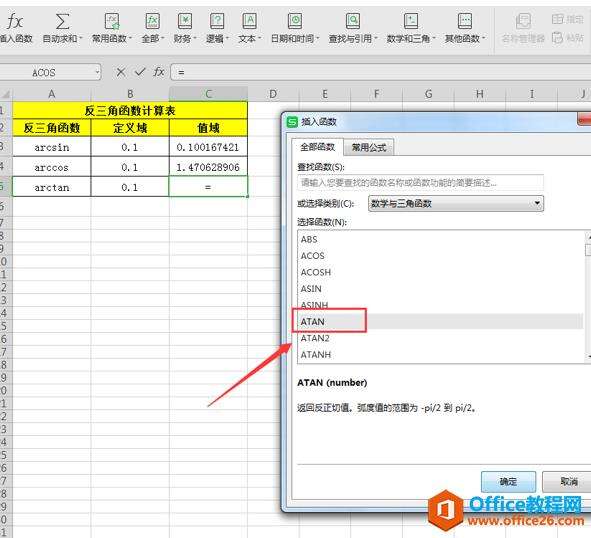 以上是为您收集整理的【WPS 怎么用Excel计算反三角函数】办公软件教程的全部内容,希望文章能够帮你了解办公软件教程WPS 怎么用Excel计算反三角函数。