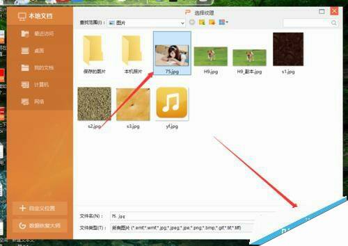 5、在打开的选择纹理对话框中,找到存放图片文件的目录,选中需要作为背景图片文件,并点击“打开”按钮。如图所示;