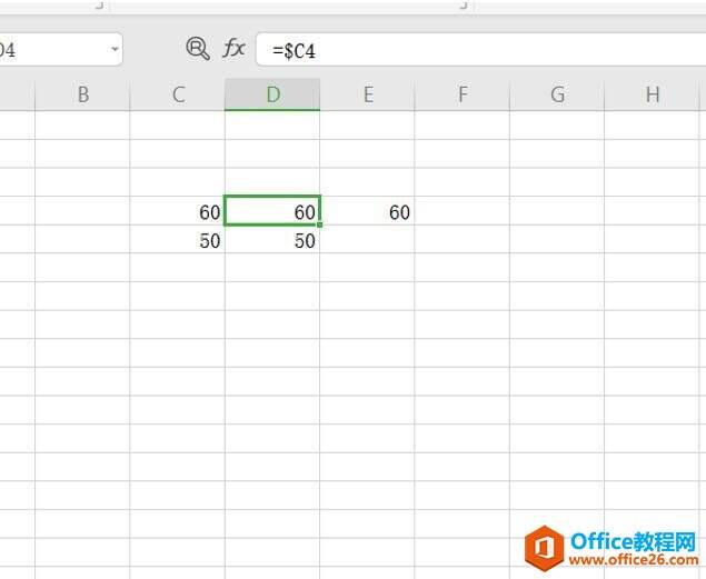 现在我们在D4单元格中输入“=$C4”,然后继续像刚才那样拖动到E4,我们会发现E4中的公式还是“=$C4”这个就是绝对公式: