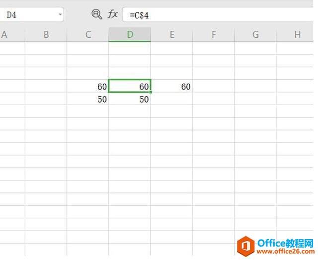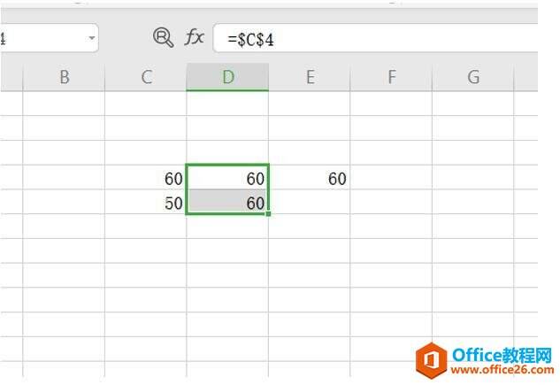 如果在D4单元格中输入“=$C$4”,那么不论我们将D4向哪个方向拖动,公式都是“=$C$4”。原来,谁前面带上了“$”,在进行拖动时谁就不变。如果都带上了“$,”在拖动时两个位置都不能变: