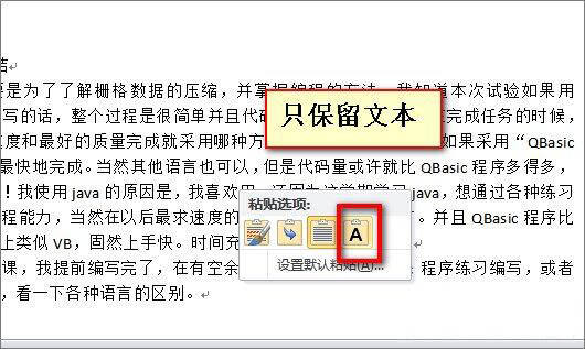 5、将复制的内容粘贴到新创建的空白文档中!在此处注意:粘贴后,选择[仅保留文本],这样将删除所有文本格式,如下图所示: