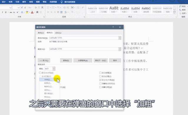 在【查找内容】栏和【替换为】栏都输入我们想要变更格式的文字我选择的是Latitude 3310
