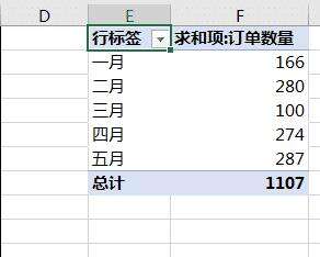 5、举例来说我们这里把月份拖到行,就会变成下图的样子。