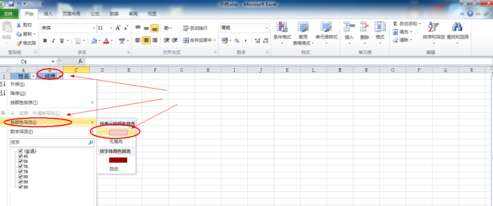 4、点击向下的黑三角形,选择按颜色筛选,选择其中的【粉红色】;
