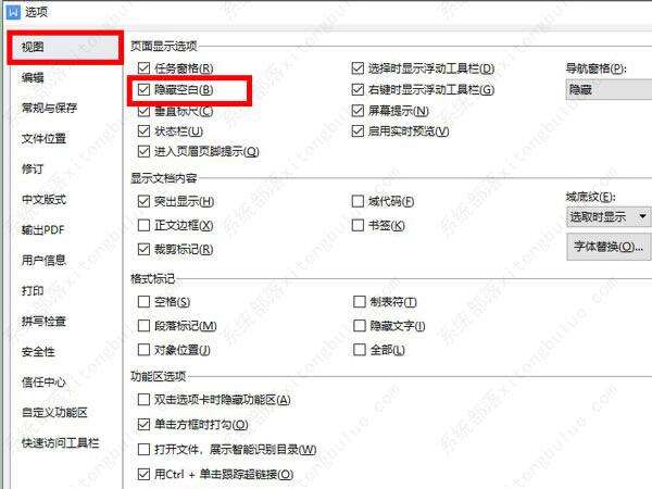 2、找到视图版块,将隐藏空白选项勾选起来即可。
