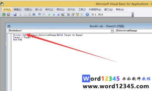 3、打开代码窗口,把如下代码复制进去Private Sub Worksheet_SelectionChange(ByVal Target As Range)Target = Target + 1End Sub