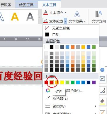 4、选中文本,单击“文本工具”-“文本填充”-“红色”。