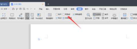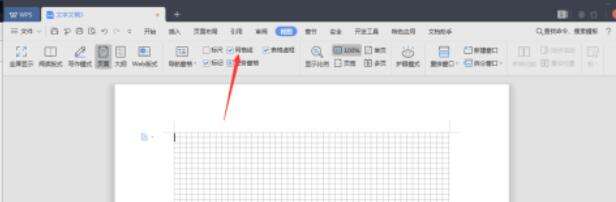 打开wps2019,点击上方工具栏中的【试图】,可以看到网格线没有被勾选,如图。