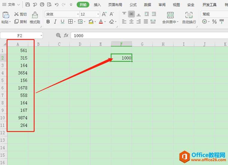 在该列数字之外的任意单元格输入数值“1000”,然后按复制组合键“Ctrl+C”,或者右键复制,再选中要加上固定数值的单元格区域A1至A11,如图所示: