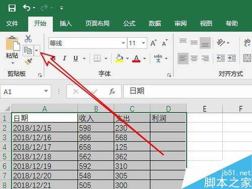 然后点击开始工具栏上的“复制”下拉按钮。