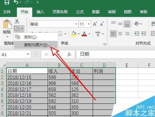 在弹出的下拉菜单中选择复制为图片的菜单项。