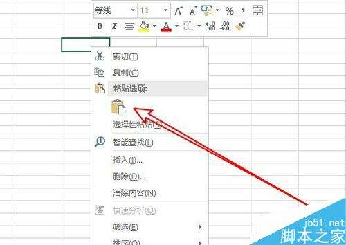 右键点击excel2019的编辑区域,在弹出菜单中选择粘贴的菜单项。