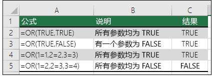 返回值:如果 OR 函数的任意参数计算为 TRUE,则其返回 TRUE;如果其所有参数均计算机为 FALSE,则返回 FALSE。