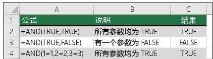 返回值:所有参数的计算结果为 TRUE 时,AND 函数返回 TRUE;只要有一个参数的计算结果为 FALSE,即返回 FALSE。