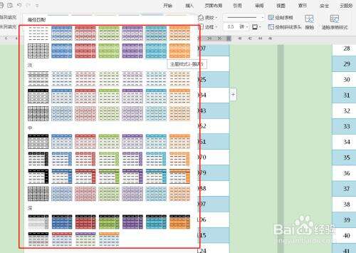 5、点击表格的样式,选择其中所需要的颜色即可。