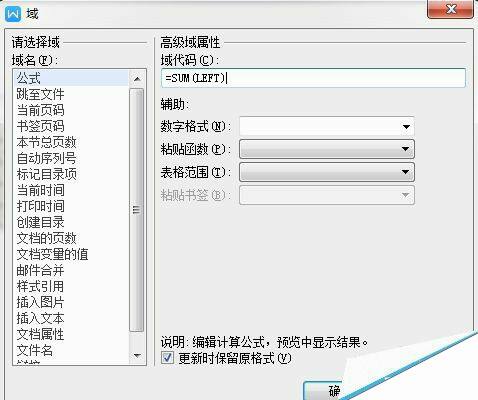 3、在需要用到公式的地方点击一下,光标闪动之后点击“域”,之后会弹出一个小框框