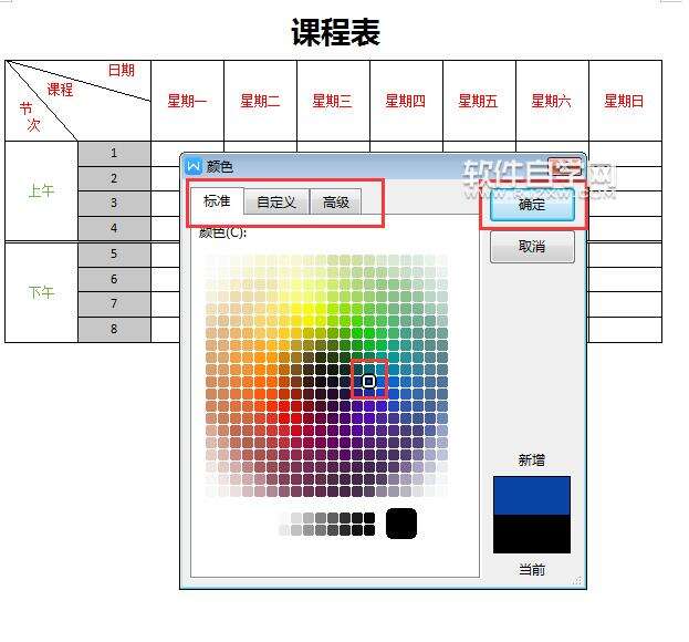 第5步、然后就会弹出颜色对话框,点击标准颜色里面的蓝色。点击确定。