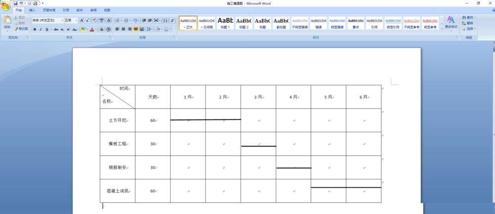 以上是为您收集整理的【word怎么绘制施工横道图? word表格制作施工横道图的技巧】办公软件教程的全部内容,希望文章能够帮你了解办公软件教程word怎么绘制施工横道图? word表格制作施工横道图的技巧。