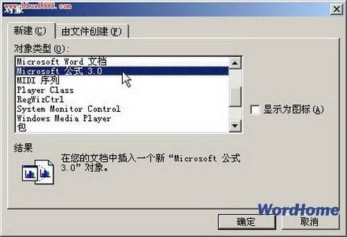 小提示:如果用户在Word2003的“对象类型”列表中无法找到“Microsoft公式 3.0”选项,则需要安装“公式编辑器”工具。